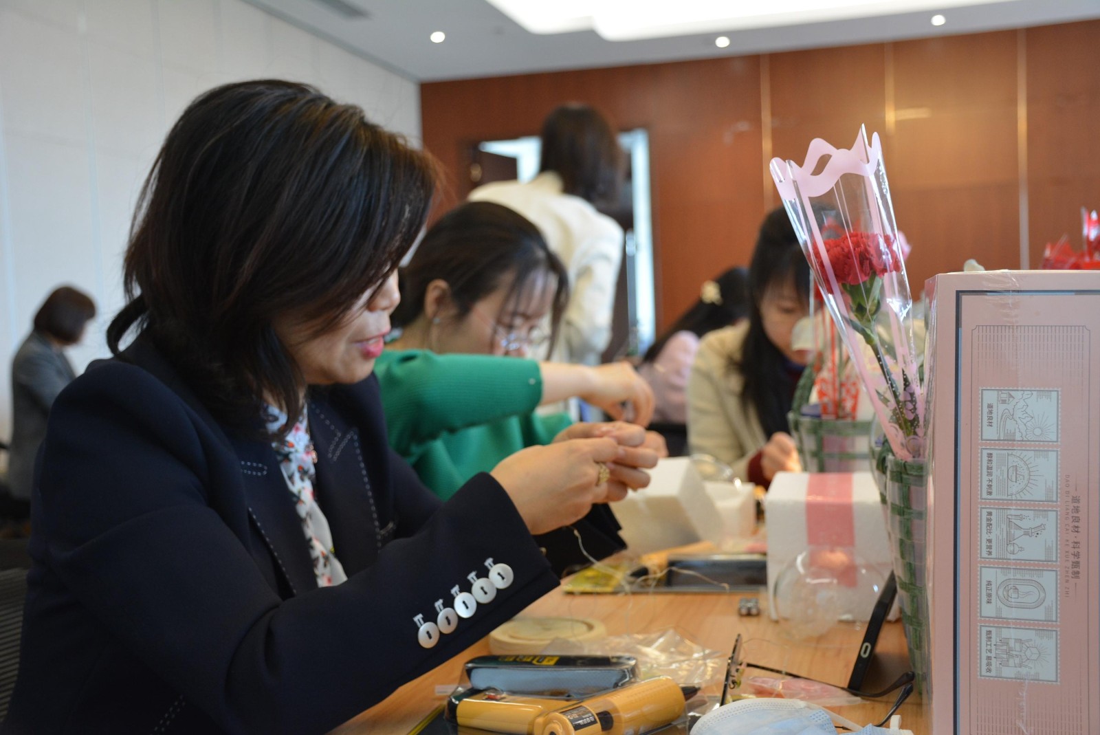 总部为女职工准备了颇具仪式感的礼物,并组织了花朵小夜灯手工DIY活动。女职工们对照教程,认真制作,在体验手工乐趣的同时增进了相互之间的交流,工作之余为大家增添了一份乐趣。
