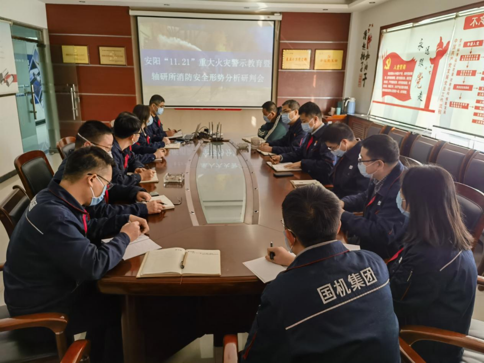 11月22日,轴研所在所区和高新产业园分别召开安阳“11·21”重大火灾警示教育暨消防安全形势分析研判会,认真学习贯彻习近平总书记重要指示精神,吸取安阳事故惨痛教训,对疫情防控和生产安全进行再动员再部署,统筹推进疫情防控与消防安全工作措施落实落地,确保职工生命安全和特殊时期企业生产的安全运行。轴研所党委书记、董事长高元安,党委副书记、总经理高飞分别主持会议,各部门驻厂负责人参加,并于会后开展消防隐患专项检查。