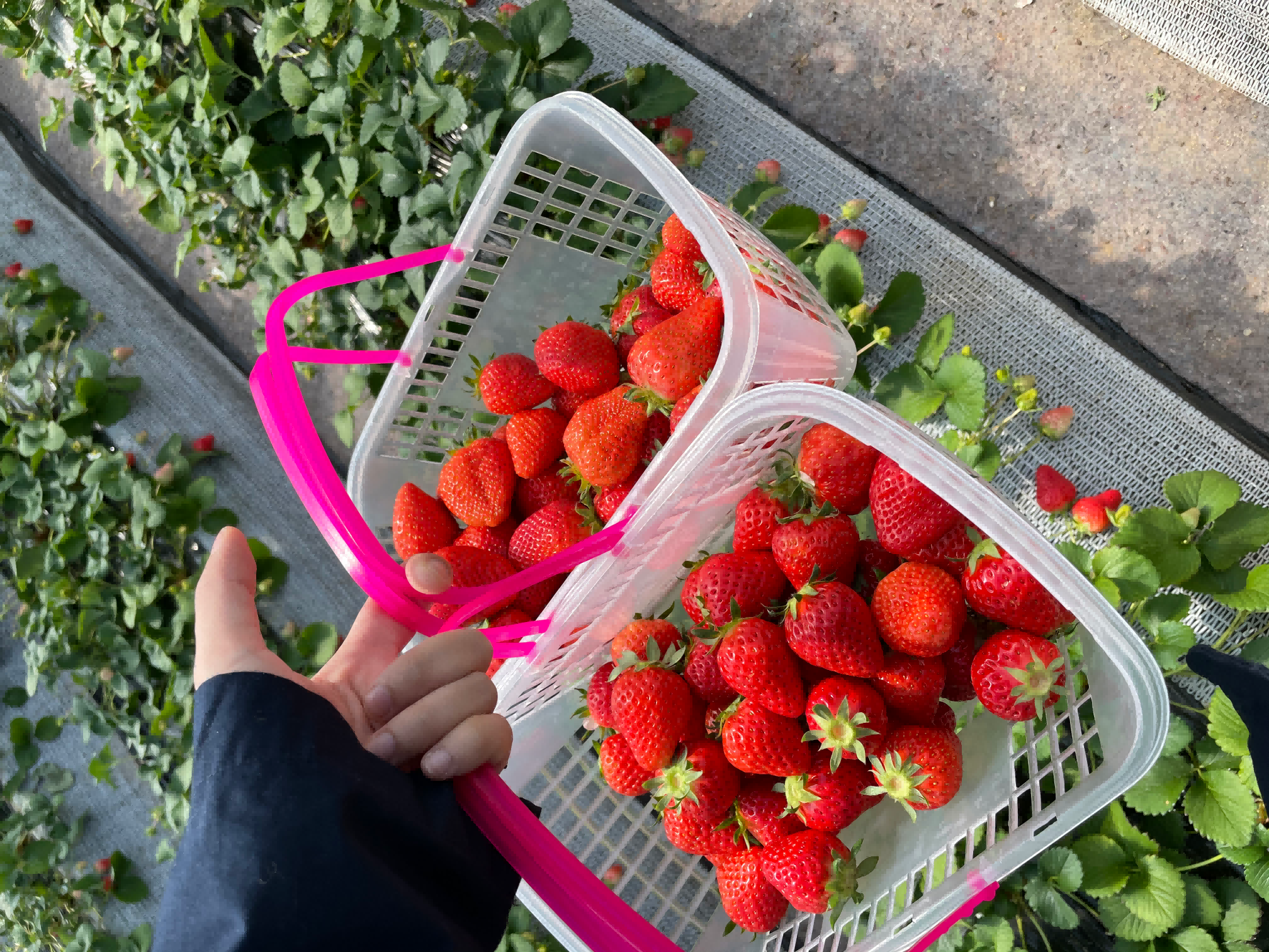 “沐三月和风,觅草莓清香”。草莓大棚内,一垄垄翠绿之间,一个个娇艳欲滴的草莓被人们小心而轻快地送进了采摘篓,满怀收获的人们脸上洋溢着幸福的笑容,好一幅“人面草莓相映红”的甜美图画。勤劳的蜜蜂嗡嗡地唱着甜蜜的歌儿,欢快的人们不时发出爽朗的笑声。