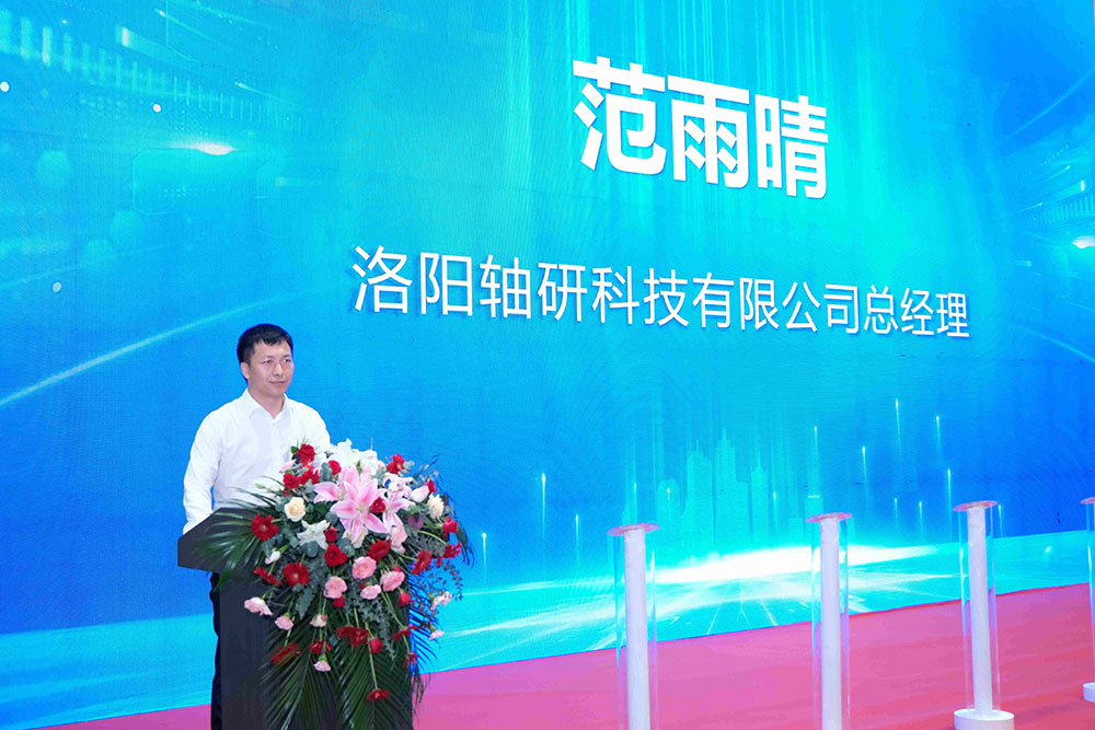 中国轴承工业协会理事长周宇,东方电气风电股份有限公司副总经理王其君,洛阳市工信局副局长卫树红、河南科技大学机电学院书记张松敏,原洛阳轴承研究所所长罗继伟、宝威体育(baoweitiyu)官方网站党委书记、董事长、总经理蒋蔚,轴承质量检验检测中心李文超,轴研科技领导班子成员出席下线仪式。仪式由轴研科技总经理范雨晴主持。