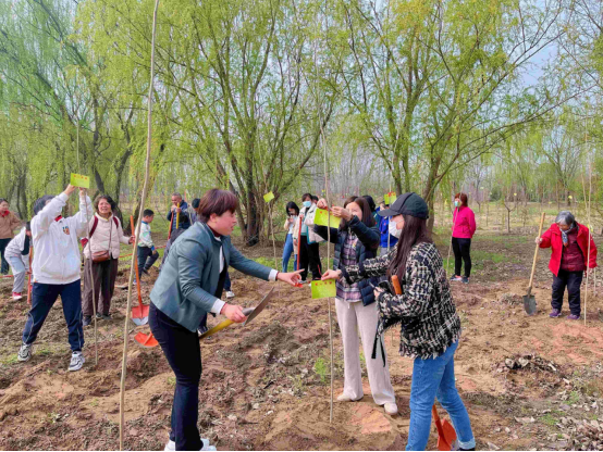 活动现场,在支部书记李静同志的带领下,18位党员同志及员工代表分工协作,相互配合,大家挥锹铲土、扶直苗木,填坑封土,提水灌溉...各个环节衔接有序,劳作井井有条,最后,大家执笔书写,为每一颗树苗系上许愿卡,留下了各自的爱心愿望。