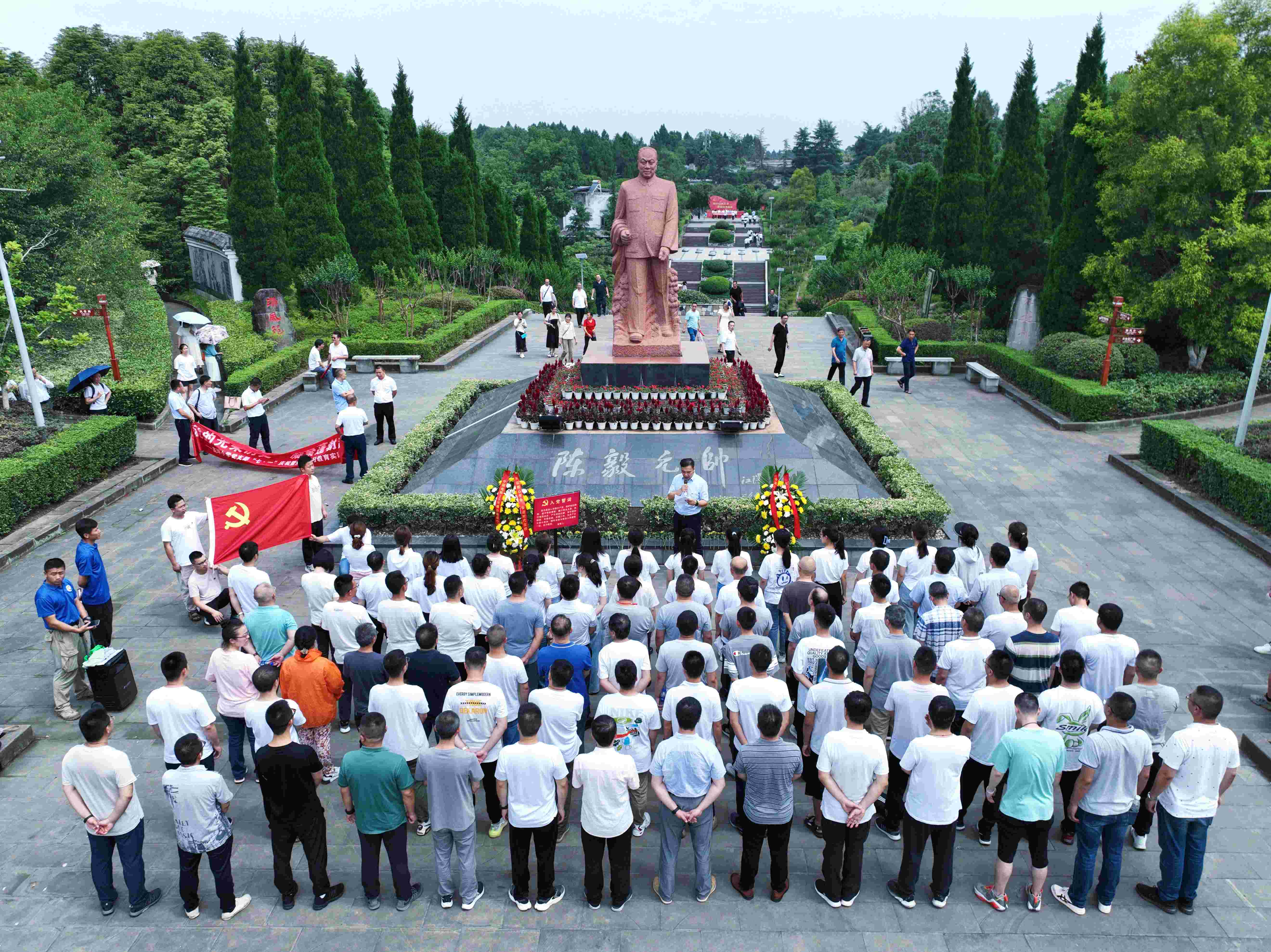 在陈毅纪念馆和陈毅故居,党员们从陈毅元帅青少年时期、第二次国内革命战争时期、抗日战争时期、解放战争时期、社会主义革命和建设5个时期的介绍中,了解陈毅元帅的成长经历、戎马生涯和峥嵘岁月,深切感受先烈无私奉献、勇担使命、敢于牺牲的精神,追思一代伟人的高尚情操和不朽功勋。在展馆内陈毅元帅塑像前,全体党员奏唱国歌,随后面对鲜红的党旗,高举右拳,重温入党誓词,字字铿锵,句句千钧,表达着对党的忠诚和为党的事业奋斗终身的决心。在“重走长征路”团队拓展培训中,大家随机组成六支队伍,选队长、起队名、想口号,全情投入、互助互信,充分发挥团队力量,竭力完成穿越雷区、共绘蓝图等团队项目,一起挥洒汗水,展示工研风采,也在培训中重温红色经典,感受先辈不易。
